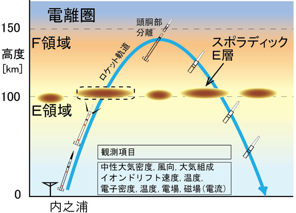 Это анализатор скорости ионов IVA (Ion Velocity Analyzer), детектор электрического поля EFD (Electric Field Detector), ионный манометр IOG (Ion Gauge), измеритель плотности электронов импеданс-зондом NEI (Number density measurement of Electron by Impedance probe), масс-спектрометр нейтральных частиц NMS (Neutral Mass Spectrometer), измеритель магнитного поля MAG (Magnetic Field Measuring Device) и быстрый зонд Ленгмюра FLP (Fast Langmuir Probe). На зондирующую ракету также поставили солнечный датчик SAS (Solar Attitude System) и геомагнитный измеритель положения GA (Geomagnetic Attitude).