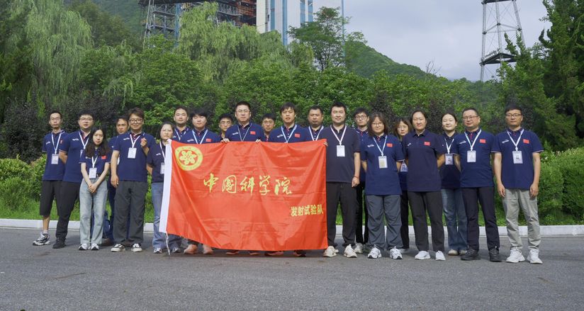 Команда испытателей КА PRSC-S1. Фирменное наименование спутника на флаге затерто