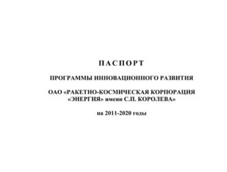 ПАСПОРТ ПРОГРАММЫ ИННОВАЦИОННОГО РАЗВИТИЯ ОАО «РАКЕТНО-КОСМИЧЕСКАЯ КОРПОРАЦИЯ «ЭНЕРГИЯ» имени С.П. КОРОЛЕВА» на 2011-2020 годы