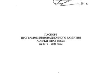 Паспорт программы инновационного развития АО «РКЦ «Прогресс» на 2019 — 2025 годы