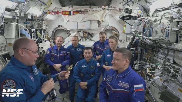 На МКС прошла церемония передачи командования станцией – Майкл Финк передал символический ключ от станции Сергею Кудь-Сверчкову.